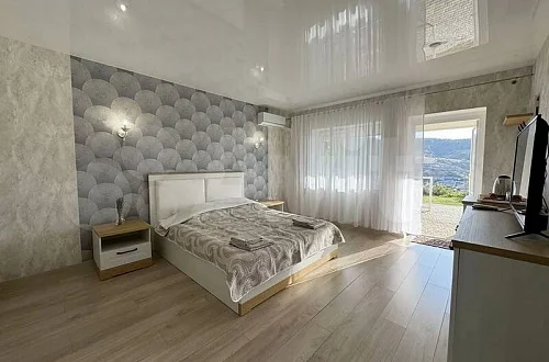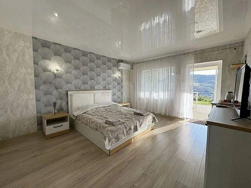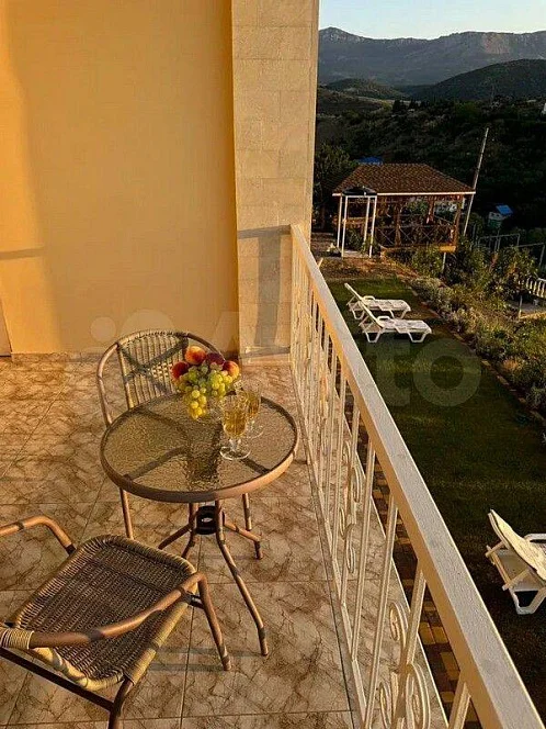 На крыше гостевого дома оборудована большая смотровая площадка с видом на горы, море, Храм-Маяк, а вечером - на лунную дорожку в море и огни поселка. За дополнительную плату можно всем этим любоваться, лёжа в спа-джакузи, и отдыхая на больших качелях всей семьёй или, наоборот, уединившись от всех. По желанию можно заказать туда и ужин.