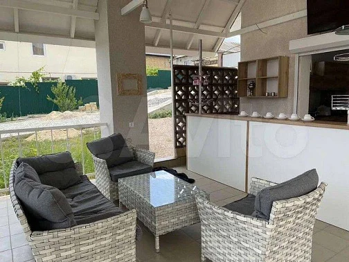 Ещё на территории есть отдельно стоящая деревянная беседка с каменным мангалом, оборудованная большим столом и мягкой мебелью. Прекрасное место для вечернего отдыха с компанией или семьёй (услуга платная).
