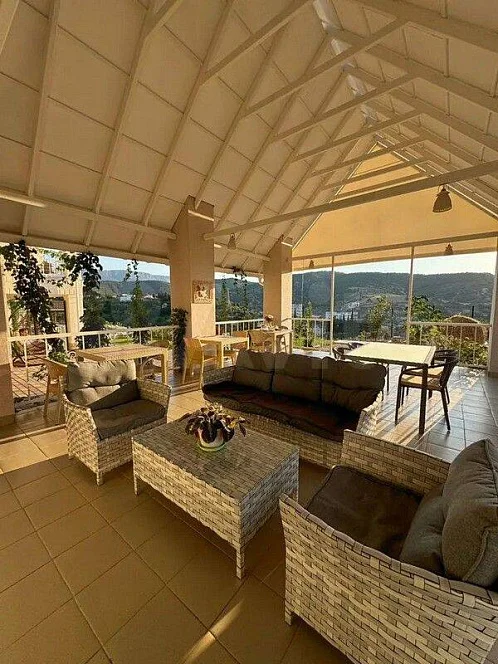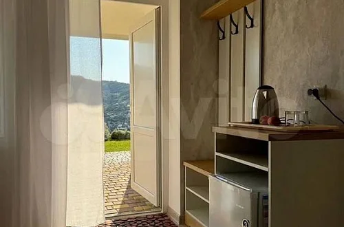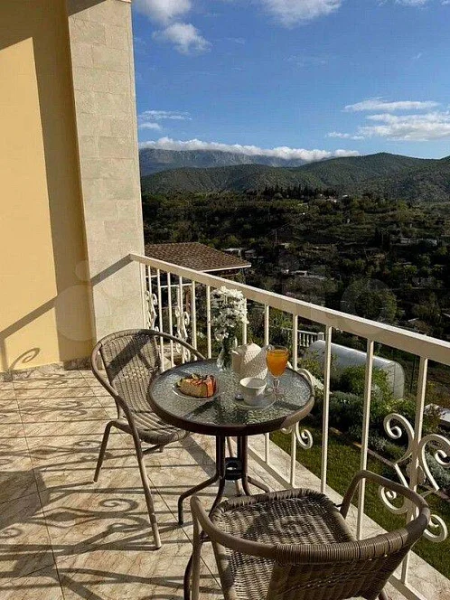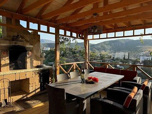Есть столовая с зоной отдыха и большим телевизором, небольшой бассейн, лежаки, большой мангал, рядом с которым оборудована зона отдыха с прекрасными видами на море и горы, лежаки-качели и пр.