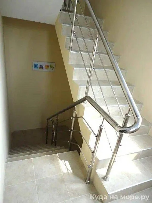 До моря 3 минуты. Идти 350 метров до пляжа "Салют" - легко с детьми и сумками. Без утомительных спусков и подъёмов. По пути столовые "Бристоль" и "Салют", кафе, магазины.