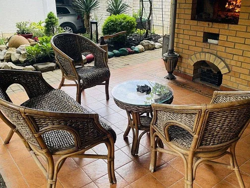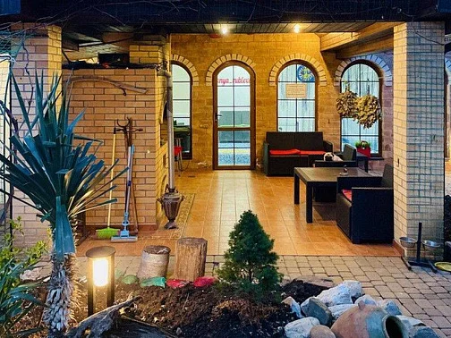 На придомовой территории гостевого дома расположены две беседки и две мангальные зоны для барбекю, где наши гости могут воспользоваться необходимыми столовыми принадлежностями: решётками, шампурами. Крытый прохладный бассейн открыт для посещения гостей с 9:00 до 16:30 (после 16:30 бассейн закрывается и начинает работать баня).