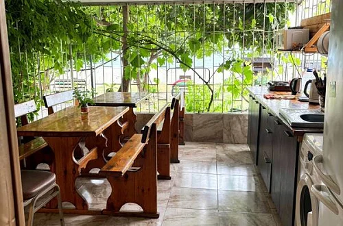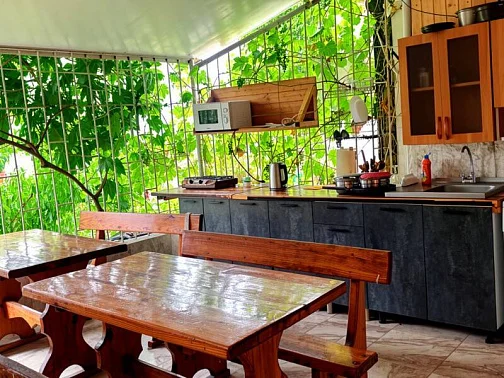Главное преимущество гостевого дома - его расположение. Пляж находится всего в нескольких метрах от дома, а море - в 30-40 метрах. Это позволяет отдыхать у воды без длительных прогулок и поездок. Поблизости есть также второй пляж с более развитой инфраструктурой, где работают кафе и оборудованы душевые.
