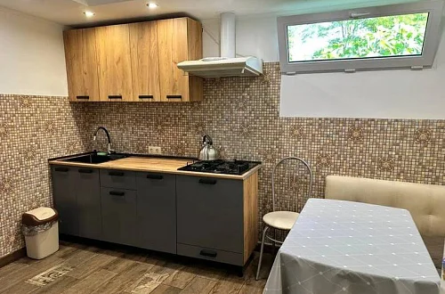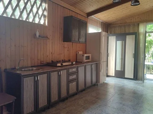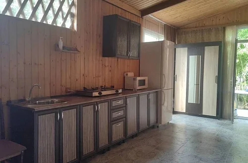 В каждом домике своя кухня, оснащённая всем необходимым: посуда, холодильник, плита, СВЧ, с/у, и придомовая территория для комфортного отдыха.