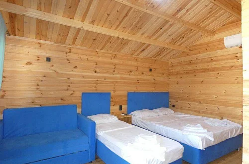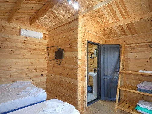 Номерной фонд отличается наличием необходимой бытовой техники и функциональной мебели. Все коттеджи оборудованы индивидуальными санузлами, односпальные и двуспальные кровати, диван, шкаф, прикроватные тумбочки, вешалка, зеркало.