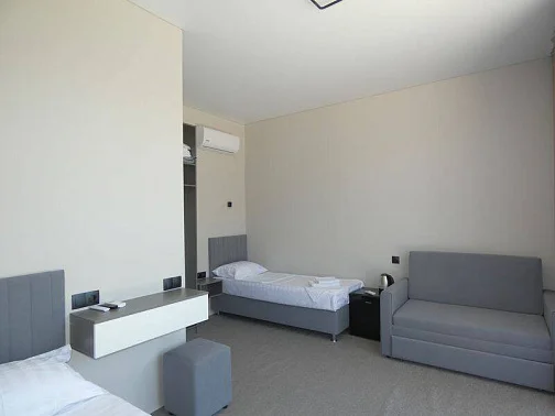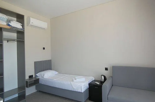 Номер оснащен кондиционером, телевизором со спутниковым тв, холодильником, проведён интернет.