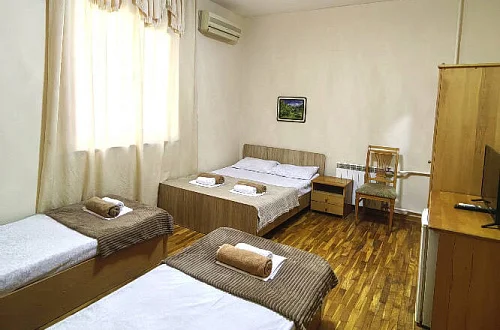 Два четырехэтажных корпуса с комфортными номерами, включая двухкомнатные варианты и номера с индивидуальными кухнями.