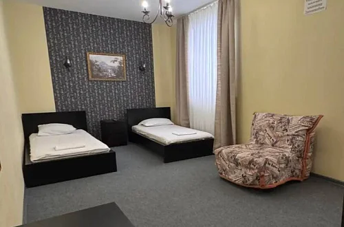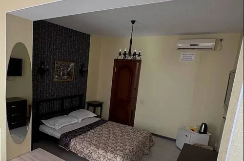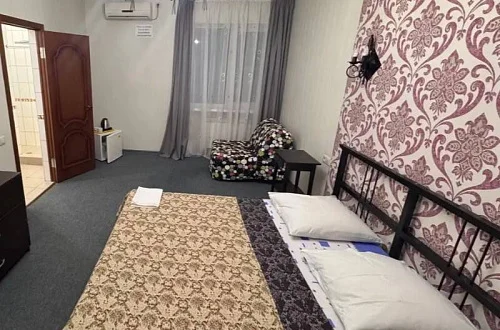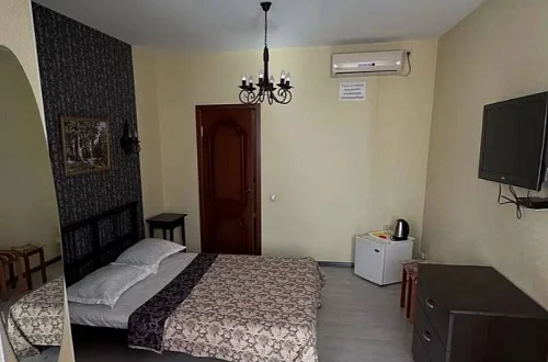 Во дворе мангальная зона, зоны отдыха. Общая кухня в здании. Есть 2х-комнатный номер со своей кухней. Будем рады видеть вас в нашем гостевом доме.