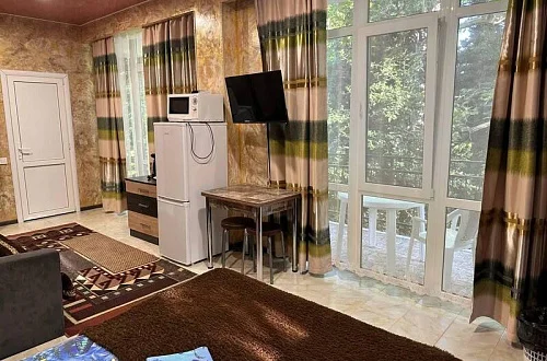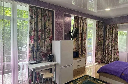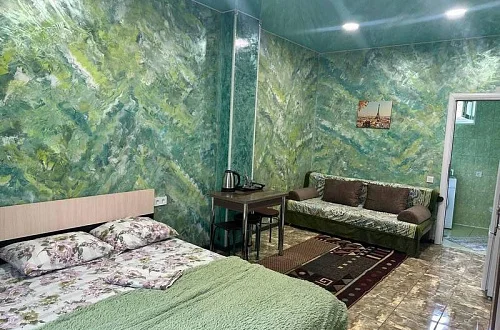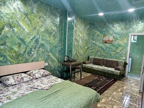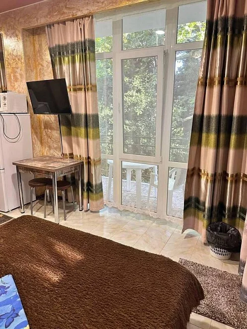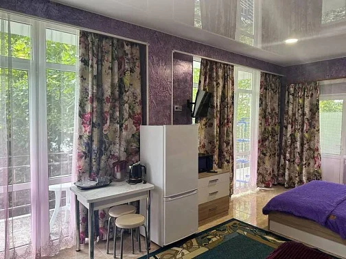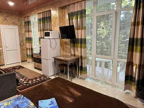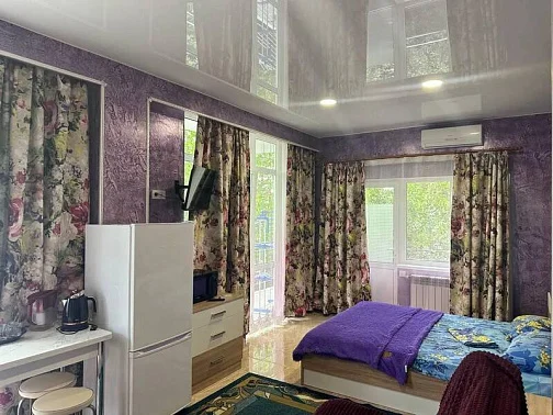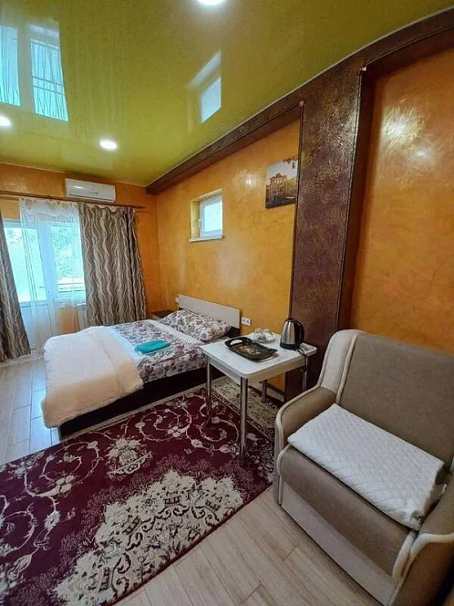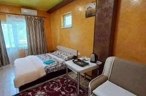 Представьте себе: вы просыпаетесь в светлом и комфортном номере, где каждая деталь создана для вашего спокойного отдыха. Новая мебель, безупречная чистота и уютная атмосфера помогут мгновенно расслабиться после увлекательных прогулок. Из окон открываются завораживающие виды: ухоженная территория гостевого дома, величественные реликтовые деревья и из отдельных номеров - потрясающий вид на гору Ай-Петри.