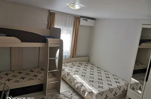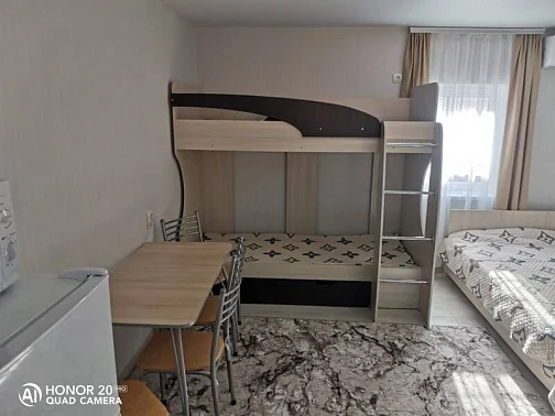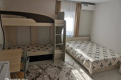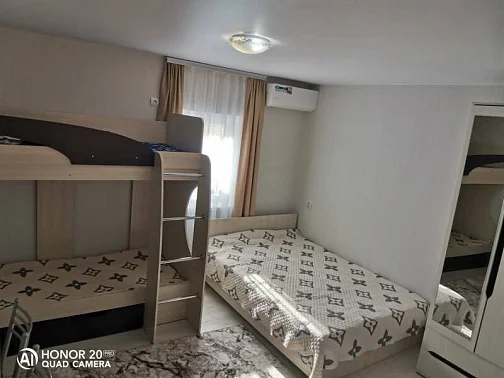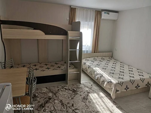 Имеются номера со всеми удобствами на различное количество человек. Во дворе имеется мангальная зона, детская площадка. Есть стоянка для авто. Просторный двор.