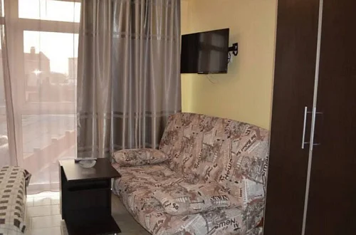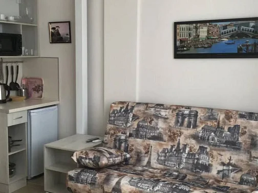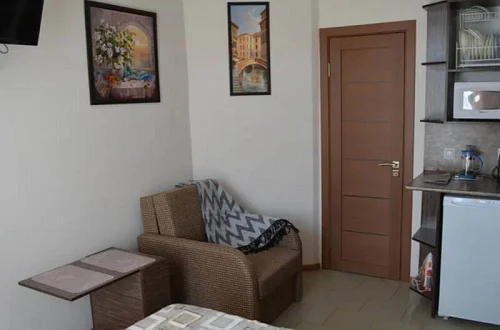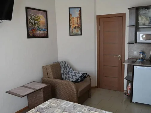 С тыльной стороны апарт-отеля в 30 метрах озеро Сасык-Сиваш, которое облюбовали утки и лебеди. В пределах 1,5 км центр исторической части города, пропитанный духом древности, где расположены 6 храмов, принадлежащие разным религиозным конфессиям. Разработан интереснейший туристический маршрут, получивший название "Малый Иерусалим", и привлекающий множество туристов. В шаговой доступности от апарт-отеля набережная им. Терешковой, парковая зона, детские площадки, колесо обозрения. В 200 метрах автобусная и трамвайная остановки.