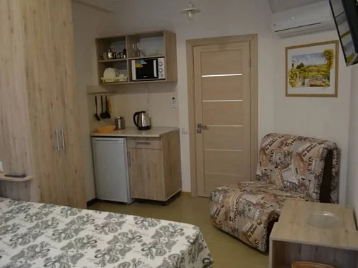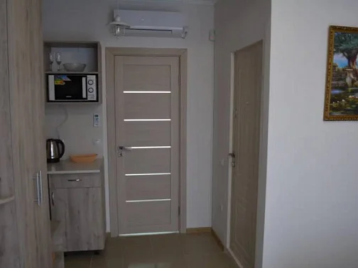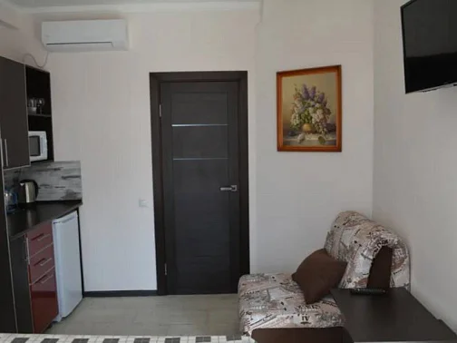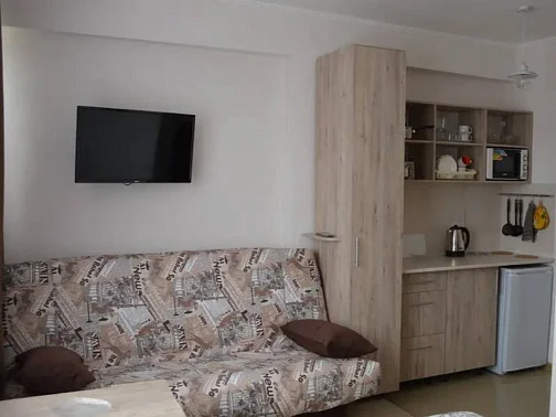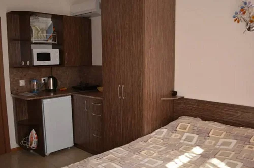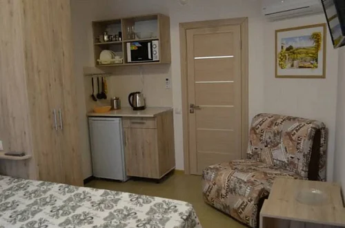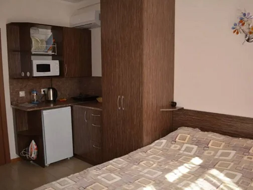 12 номеров апарт-отеля расположены на трех этажах. На второй и третий этажи ведет лестница. Все номера оснащены кондиционерами, холодильниками, телевизорами с плоским экраном, W-Fi, феном. В каждом номере встроена мини-кухня с микроволновой печью, чайником, необходимой посудой. Предусмотрено постельное белье и полотенца (смена 1 раз в 10 дней). Есть необходимый инвентарь для самостоятельной уборки (уборка не предоставляется).