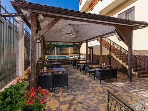 - благоустроенный внутренний двор (столы, стулья, шезлонги, беседка-бар)