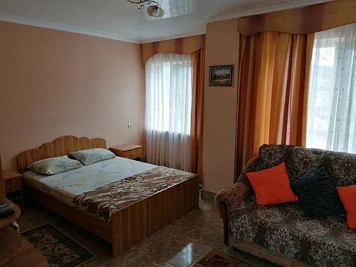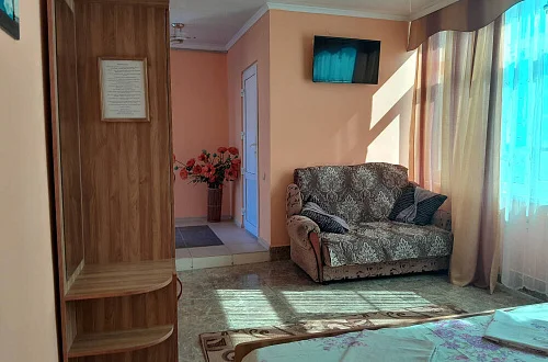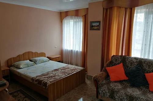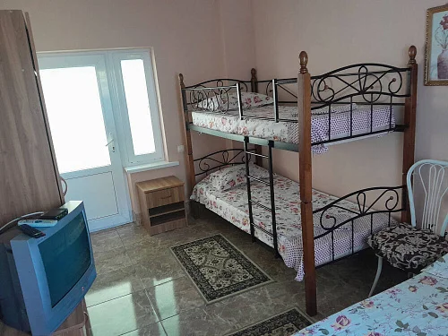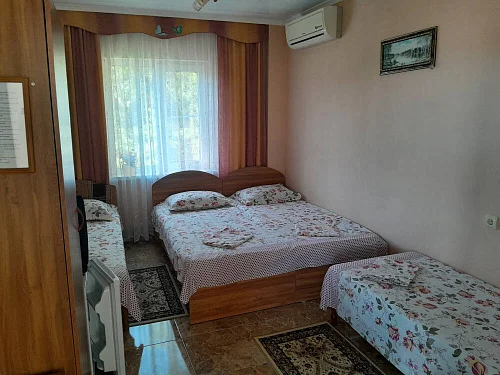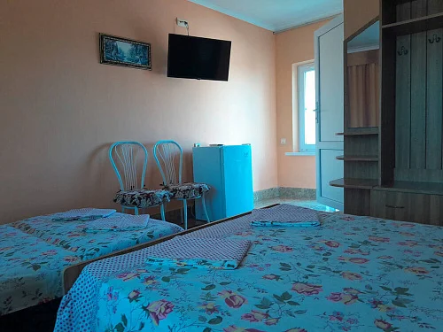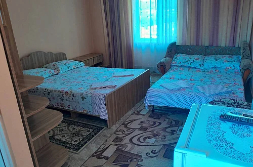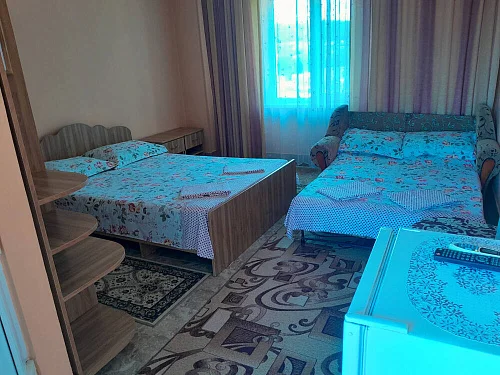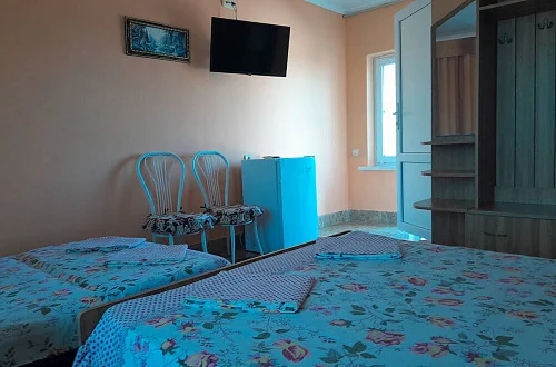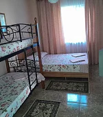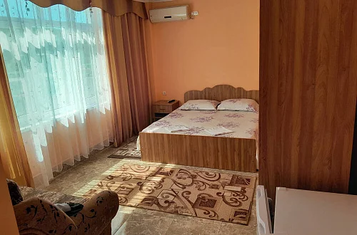 К размещению гостей предлагаются номера категории "Комфорт", "Делюкс", "Стандарт" и "Эконом". В номерах: необходимая мебель (односпальная/двуспальная кровати, шкаф, тумбочки, вешалка, зеркало), кондиционер, телевизор, холодильник. В номерах "Делюкс" санузел и душ в номерах, для "Стандарт" и "Эконом" - на этаже на 2 номера 8 штук.