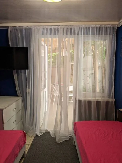 Хоть гостевые комнаты и не очень большие, но вы найдёте всё необходимое для комфортного проживания в них. Номера со стандартными удобствами: душ, туалет, кондиционер, холодильник, телевизор ЖК, удобные кровати и постельные принадлежности. Все номера оборудованы мини-кухнями со всеми необходимым. Также мы предоставляем стиральную машинку, пользование которой входит в стоимость. Есть кабельное телевидение, Wi-Fi.