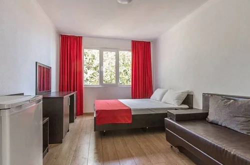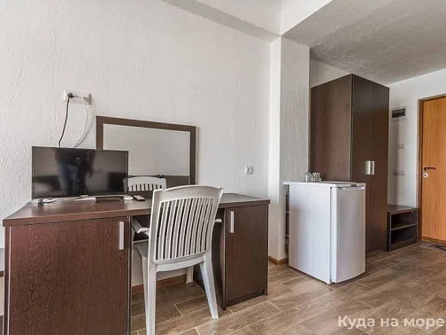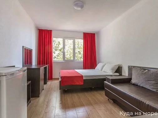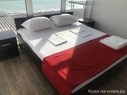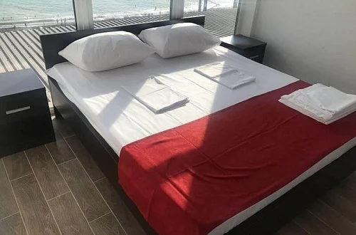 К Вашим услугам современные и комфортные номера категорий 2х-комнатный (семейный) и 1-комнатный (2х-местный), оборудованные всем необходимым: французская кровать, диван (раскладной), кондиционер, спутниковое телевидение, телефон, холодильник, ванная комната (душ), в номерах имеется также выход на балкон, откуда открывается потрясающий вид на безграничное синее море.