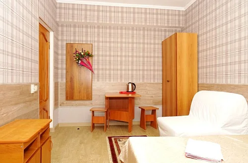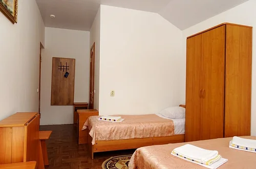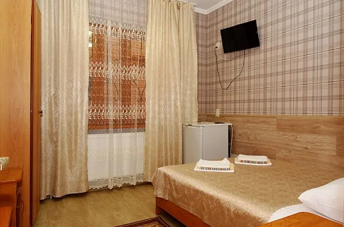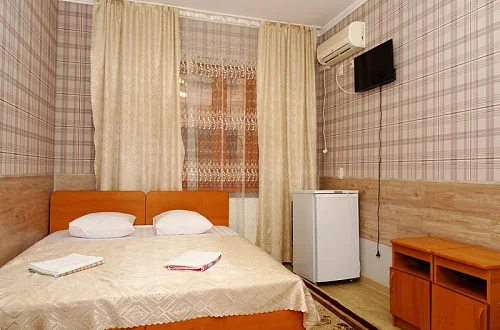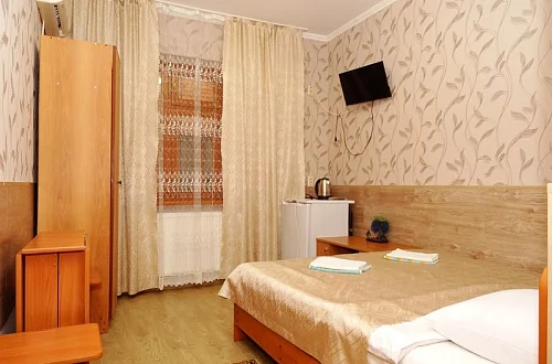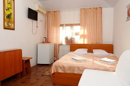 Мини-гостиница "Солнце" находится в 1 курортной зоне. Расстояние до пляжа примерно 800 метров, пляж большой, шириной 100-150 метров. В Анапу можно проехать на городском транспорте за 15-20 минут. У нас тихий, спокойный район, ночью не слышно громкой музыки с набережной, мешающей нормальному ночному отдыху. Наша мини-гостиница-это современное 3-х этажное здание, оборудованное всем необходимым для приятного отдыха. Во дворе имеются уютные беседки, теннисный стол, бильярд, пергола для принятия солнечных ванн. Для организации досуга имеется площадка и бассейн. Желающие приготовить шашлык могут воспользоваться барбекю с уютной беседкой. Каждый номер оснащен телевизором, кондиционером, холодильником, санузлом с душевой кабинкой.