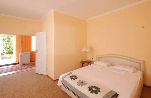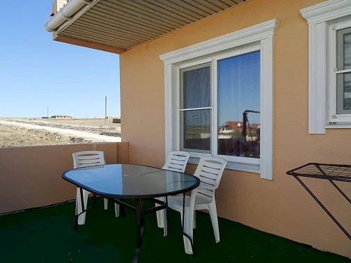 Она расположена на западном побережье Крыма, в одной из жемчужин Тарханкута в курортном поселке "Оленевка". Именно здесь самое теплое море с удивительной береговой линией, а песчаные пляжи с мелководьем - настоящий рай для отдыха с детьми.