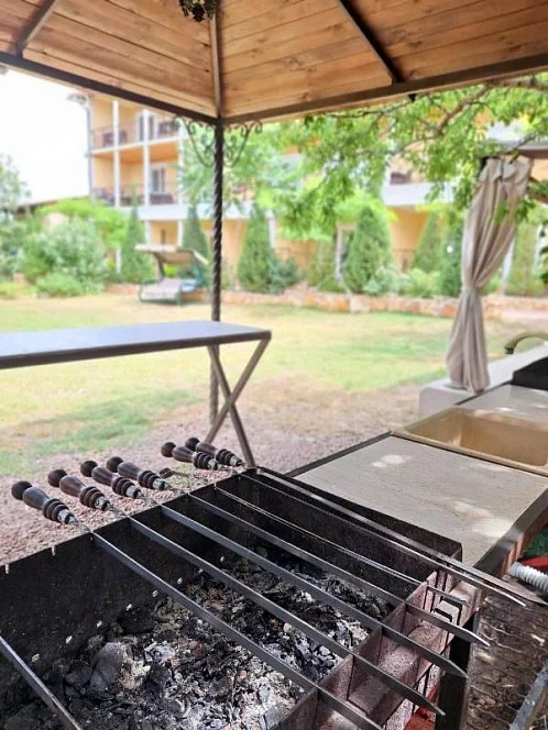 - для гостей без авто на пляж и обратно 1 раз в день организован трансфер (бесплатно)