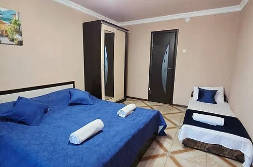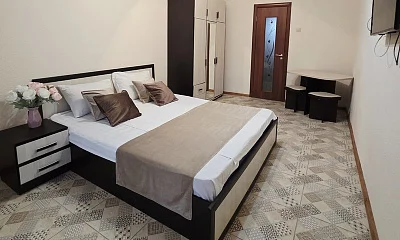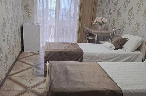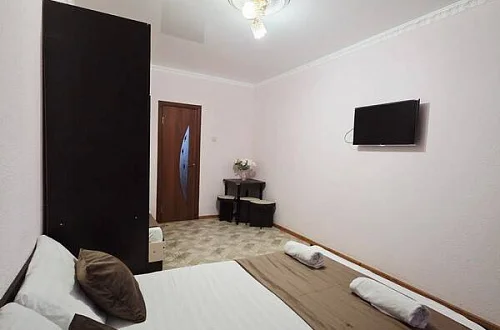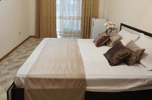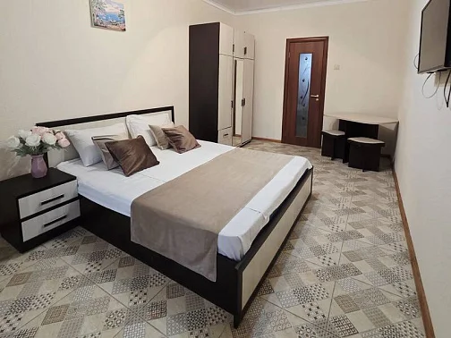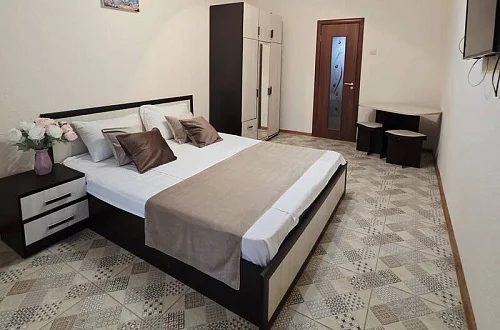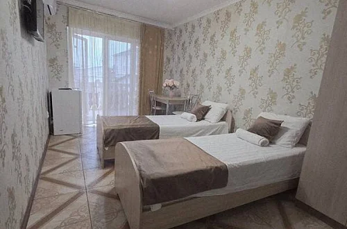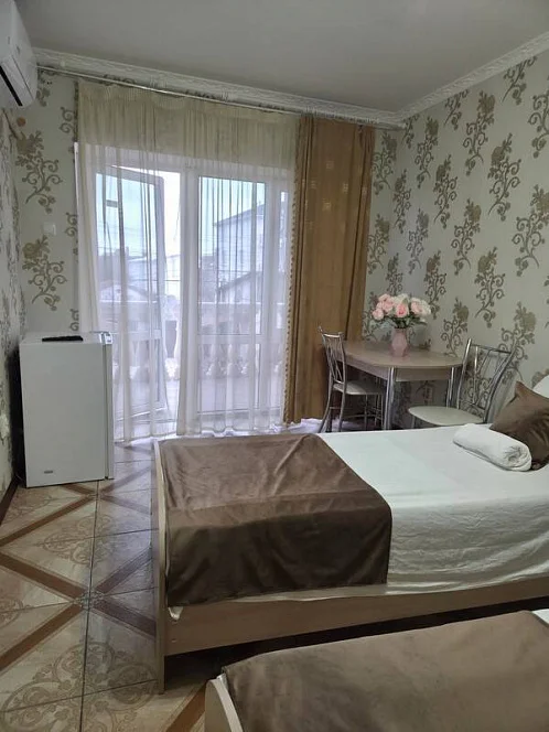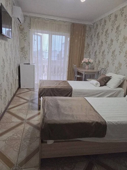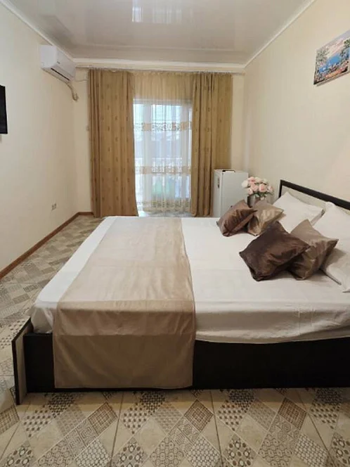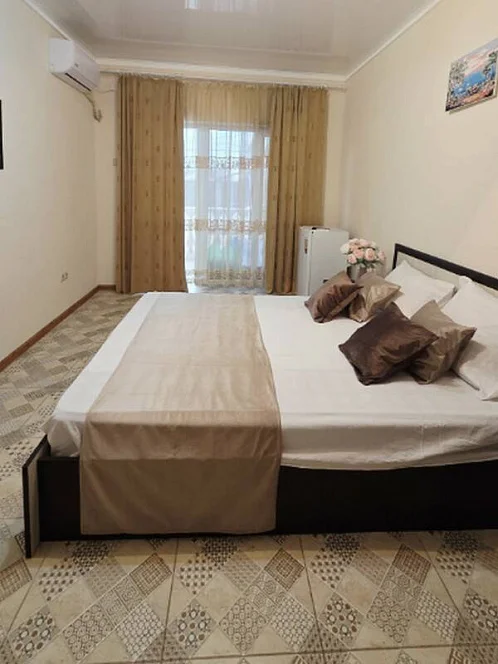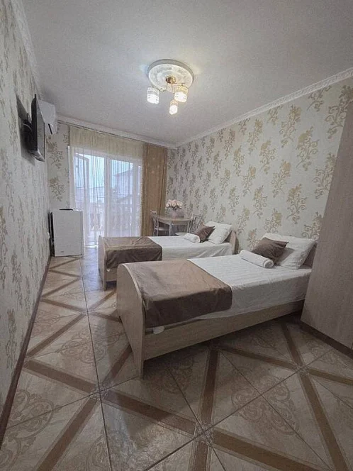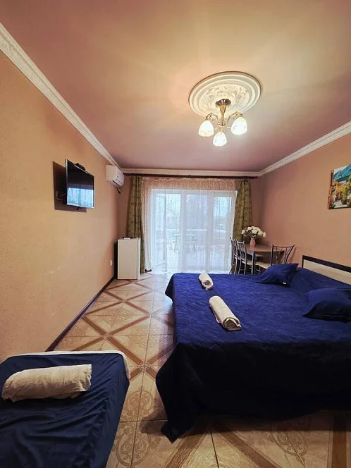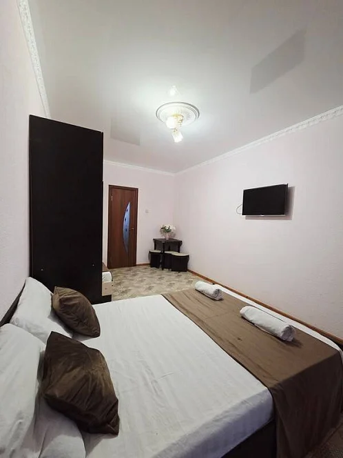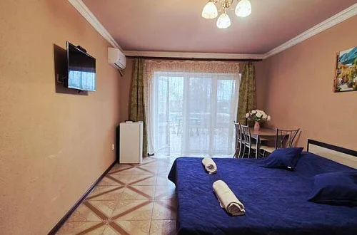качественной мебелью, телевизором с плоским экраном, холодильником, сплит-системой, собственным С/У в номере. Комплект постельного и полотенец на каждого гостя. Wi-Fi на территории.