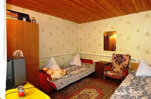 Для проживания гостям мы рады предложить комнаты эконом класса и номера с удобствами и мини-кухней. В комнатах класса эконом класса есть вентилятор, телевизор, кровати и шкаф. Все номера имеют выход в уютный дворик в тени винограда, где находится общая кухня-столовая на открытом воздухе.