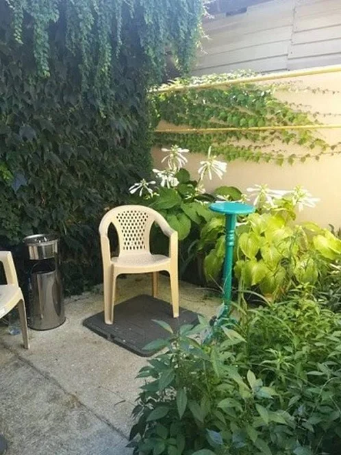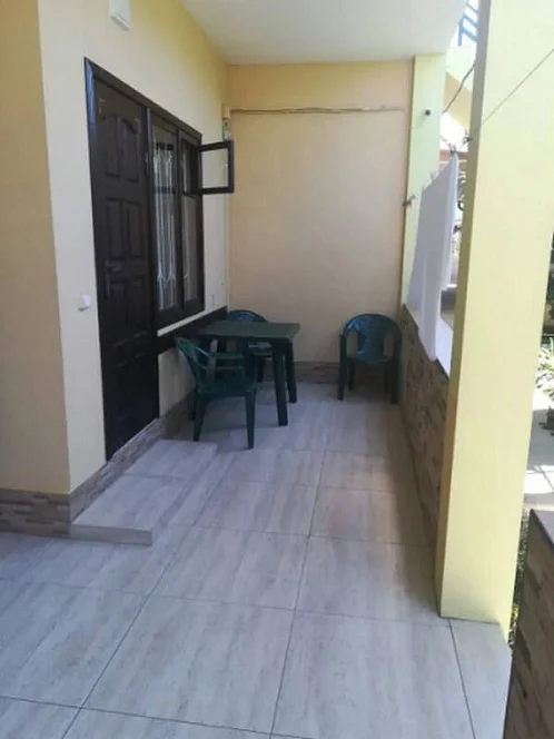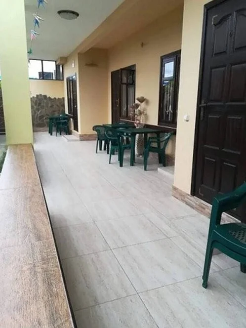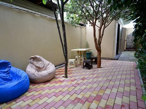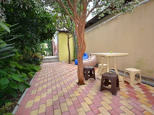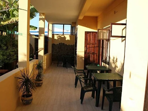 Возле каждого номера стоят столики со стульями. Общие санузлы находятся во дворе (2 душа и 2 туалета) и на втором этаже (1 душ и 1 туалет). Очередей не бывает.
