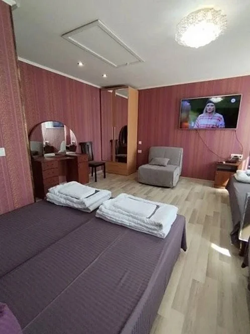 Дом 2х-этажный. К услугам гостей предлагаются номера категории эконом (в комнатах ЖК телевизор, кондиционер) и один номер с удобствами (в комнате санузел, ЖК телевизор, кондиционер). На каждом этаже по 4 номера.