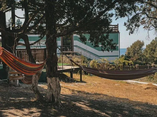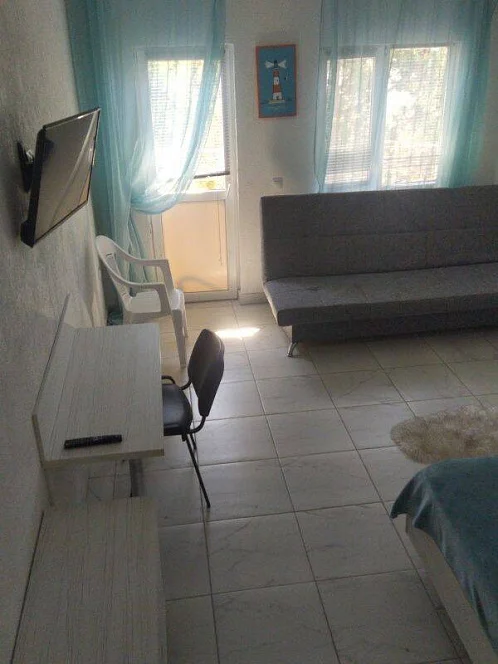 Номера комфортные, рассчитаны до 4 гостей. В каждом - душ и туалет, балкон, холодильник, сплит-система, ЖК телевизор, платяной шкаф и главное - огромная двуспальная кровать с ортопедическим матрасом (200×180×30), чтобы сон был крепким, как после хорошего морского дня. Из окон видно море и можжевельник: просыпаться здесь особенно приятно.