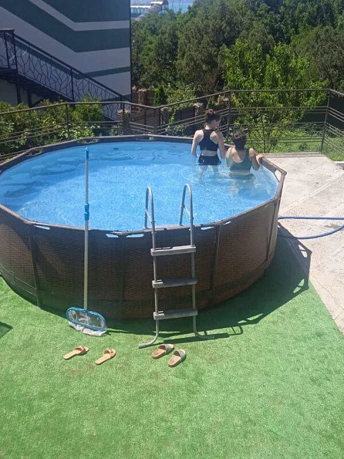 На территории всё устроено так, чтобы вам было хорошо и взрослым, и детям. Есть летняя кухня (газовые плиты, СВЧ, эл. чайники) - можно готовить в удобном ритме. Для уютных вечеров предусмотрена крытая зона барбекю: кирпичный мангал, русская печь, свет и вода - всё под рукой. Можно отдыхать на террасе, загорать на лежаках, освежиться в каркасном бассейне, поиграть в настольный теннис. Для детей - настоящая радость: гамаки, качели, батут и места для игр.