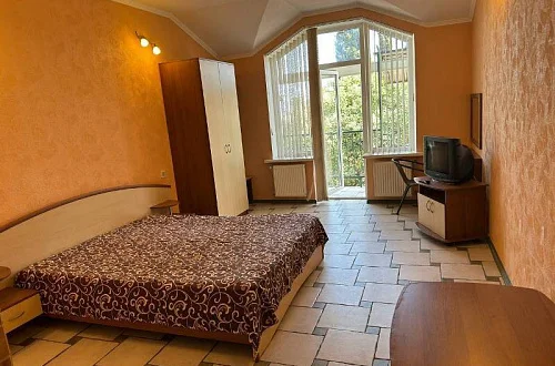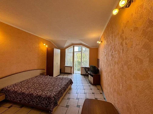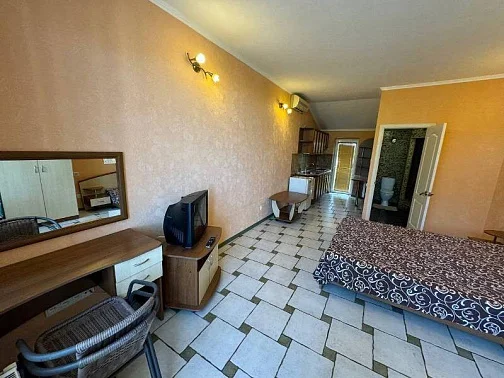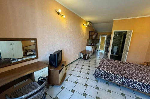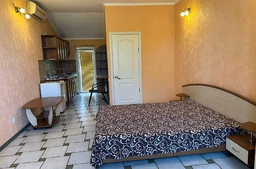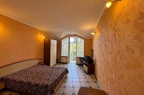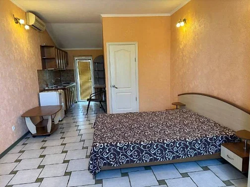 В номере: двуспальная кровать + кресло-кровать; кухня, вся необходимая посуда; санузел, душ, стиральная машина; ТВ, холодильник, кондиционер, утюг, WI-FI. Дворик небольшой на 2 номера, мангал. К морю 20 минут спокойным шагом. Заезд после 14:00, выезд до 12:00 или по договоренности. Минимум 5 суток.