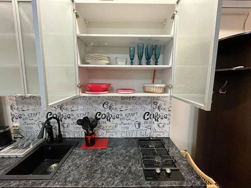 На кухне, расположенной в квартире, есть все необходимое для самостоятельного приготовления пищи: холодильник, газовая плита, СВЧ и посуда. Вы сможете легко готовить свои любимые блюда, а на балконе можно наслаждаться трапезой на свежем воздухе.