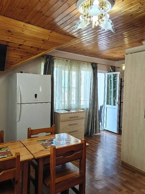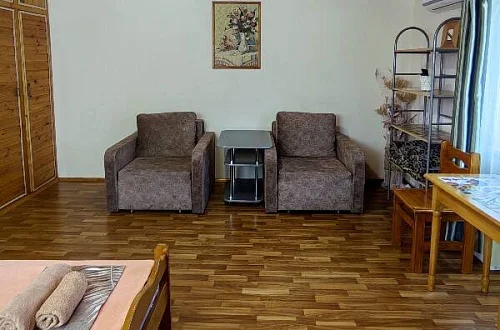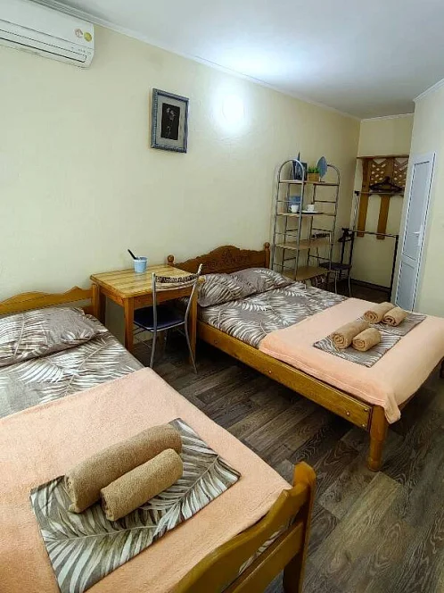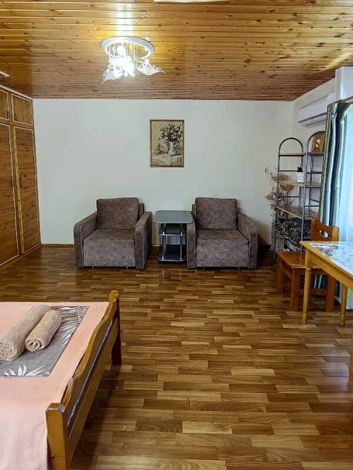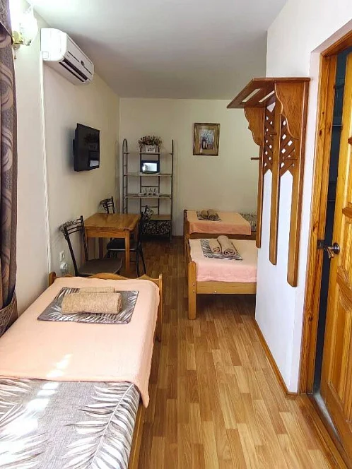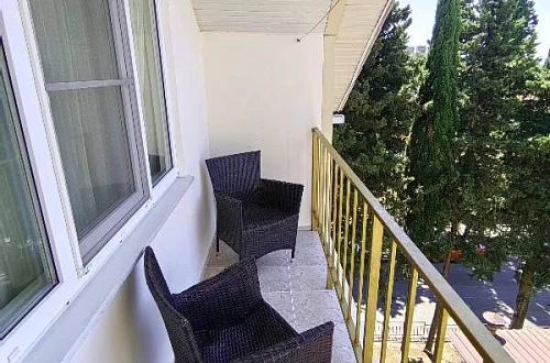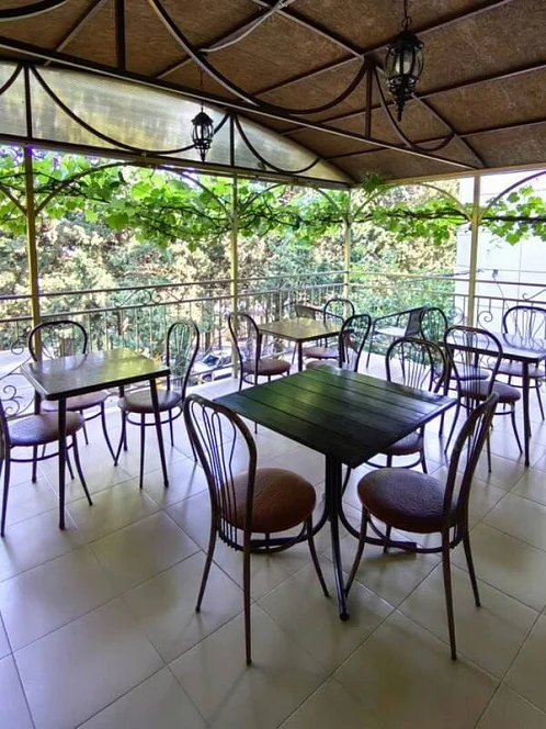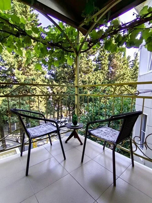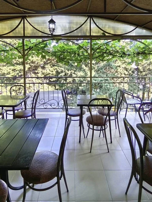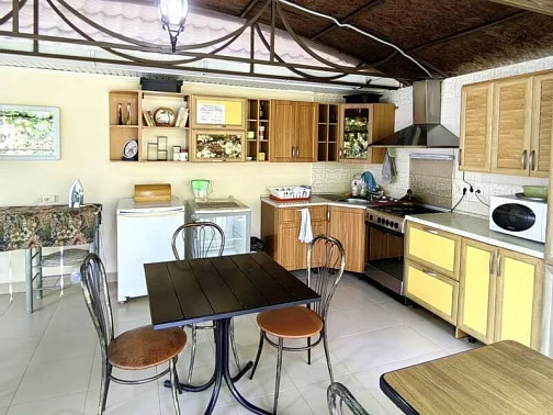 Территория: на территории множество красивых южных растений и цветов. Общая оборудованная кухня на террасе, со всеми необходимыми принадлежностями для приготовления пищи. Так же, места для отдыха - со столиками и стульями.