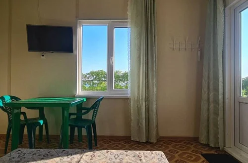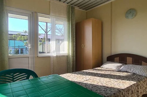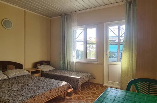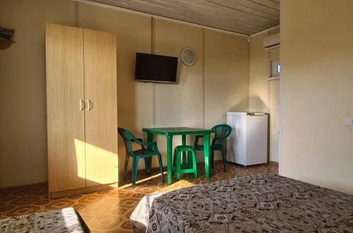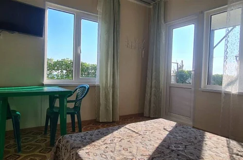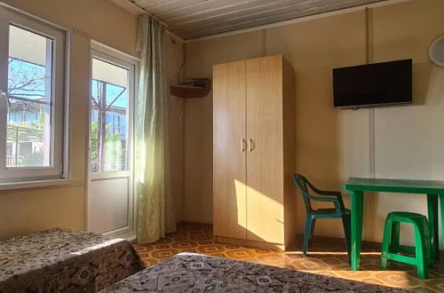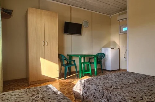 В коттедже 6 номеров; на каждом этаже - по 2 3х-местных (19 кв.м.) и 1 2х-местному (16 кв.м.). Из окон всех номеров открывается вид на море. В каждом номере есть корпусная мебель, сплит-система, ЖК-телевизор, холодильник, санузел (душ, раковина, унитаз, холодная и горячая вода круглосуточно). На 2 этаже перед каждым номером выделен свой участок балкона под навесом с установленными столами и стульями. Все номера могут при необходимости вместить дополнительно по 1 человеку (на складной кровати).