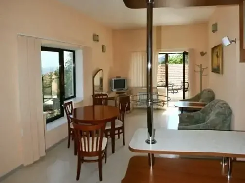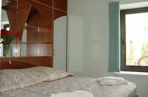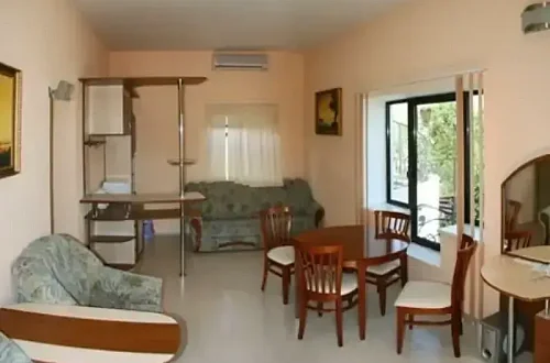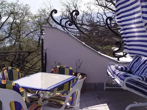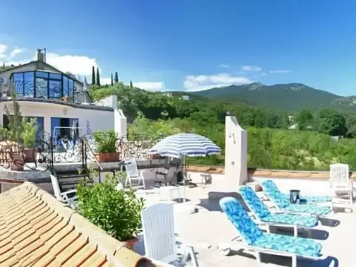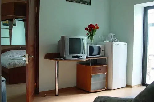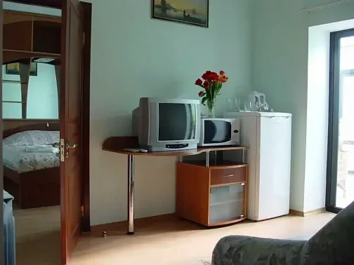 В гостевом доме 10 2х-местных номеров класса А, 2 2х-комнатных номера класса "Люкс", 1 из них с зимним садом. 2х-комнатные апартаменты с большой мансардой и полностью оборудованной кухней. Из всех номеров открывается прекрасный вид на парк, море и г. Ялту. Все номера оборудованы кондиционерами, холодильниками, горячей и холодной водой, международной телефонной связью, а также кабельным телевидением.