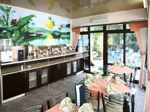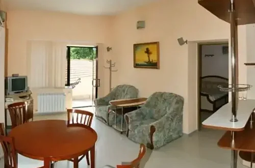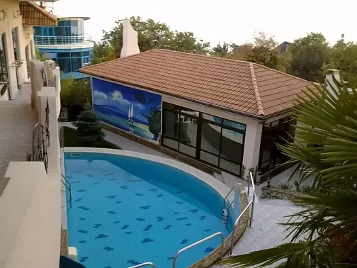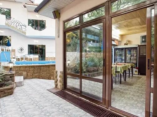 Ежедневная уборка номеров, смена постельного белья 1 раз в 3 дня. К услугам отдыхающих: с 08:00 до 23:00 на территории виллы работает кафе с разнообразным меню. В стоимость номера входит: завтрак "Шведский стол", охраняемая автостоянка, детская площадка, бассейн с подогревом и противотоком, летний кинотеатр, компьютерные игры, Wi-Fi интернет, бильярд, настольный теннис, сейф, пляжные полотенца, зонтики.