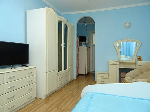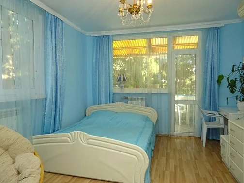 Спальня (одна двуспальная большая кровать, шифоньер, трюмо, письменный столик, кресло (при желании раскладывается), кондиционер);