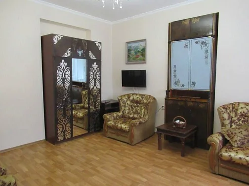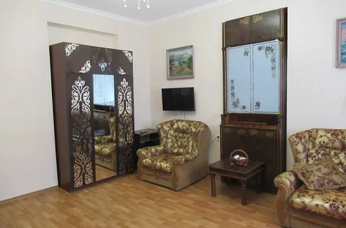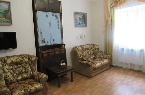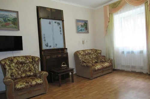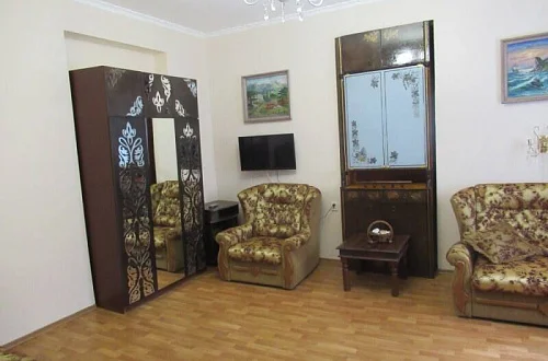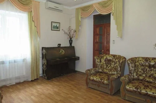 Гостиная (два раскладных дивана, два раскладных кресла, пианино, шифоньер, встроенный в стену шкаф, телевизор со спутниковым вещанием, кондиционер);