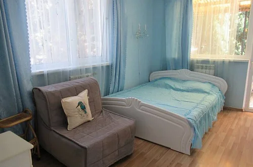 К услугам гостей: спальня, санузел, два балкона (один из которых оборудован под летнюю кухню).