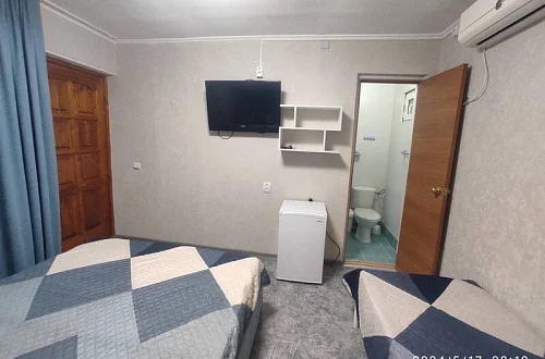 У нас Вас ждут уютные и чистые номера со всеми удобствами, Wi-Fi, парковка, беседка с мангалом для приятных вечеров в компании друзей и родных, летняя кухня, зеленая территория и свежий воздух. Во всех номерах - душ, туалет, кондиционер, холодильник, ТВ. Если Вы хотите готовить сами - в вашем распоряжении летняя кухня со всем необходимым, также в шаговой доступности есть две столовые.