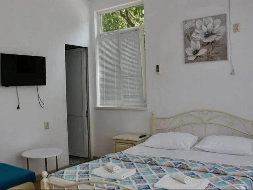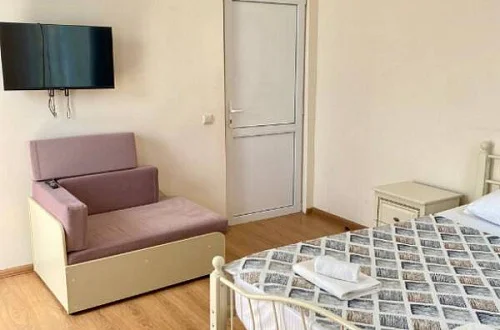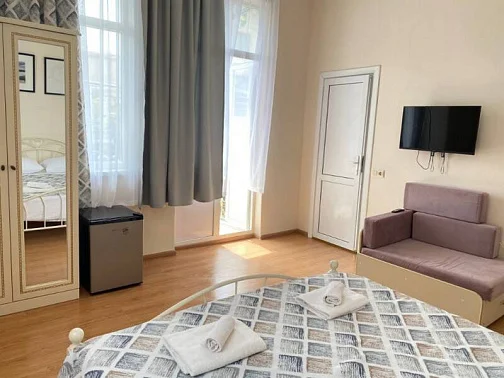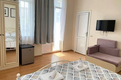 Номера в доме оснащены всем необходимым для Вашего комфортного пребывания! Качественный Wi-Fi интернет. Собственный санузел в номере, полотенца, фен, сплит-система, холодильник, спутниковое телевидение. Во всех номерах свежий ремонт и новая современная мебель.