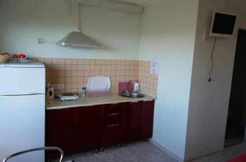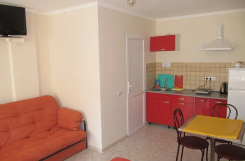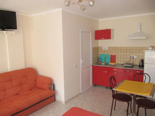Все номера с удобствами. В каждом номере есть: кухня со всей необходимой посудой, телевизор, кондиционер, санузел с душевой кабиной.