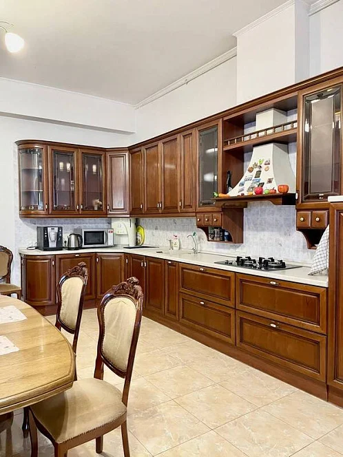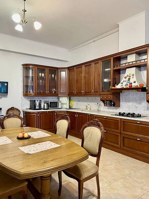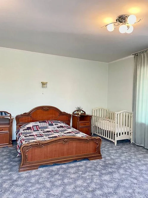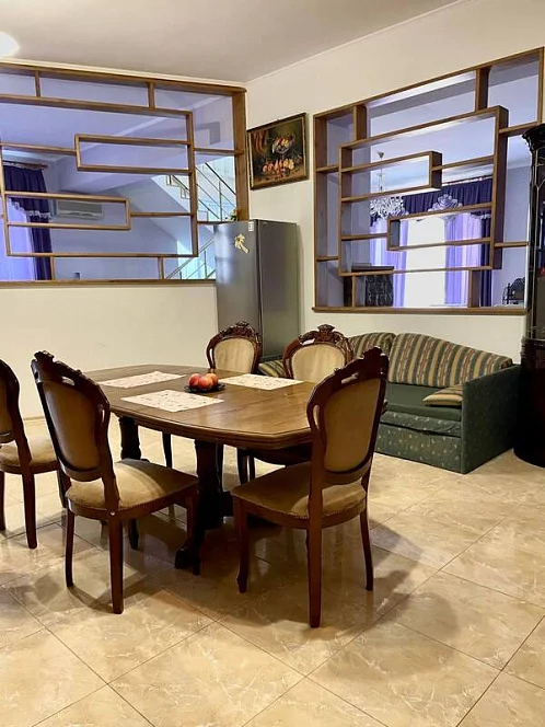 Просторный трехэтажный коттедж под-ключ в тихой части города. с крытым бассейном (80 куб.м.) с выходом во двор, сауна. Уютный, закрытый, утопающий в зелени двор с беседкой и мангалом, парковка на 3 машины.