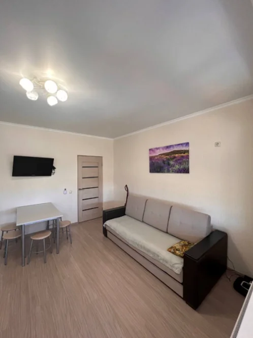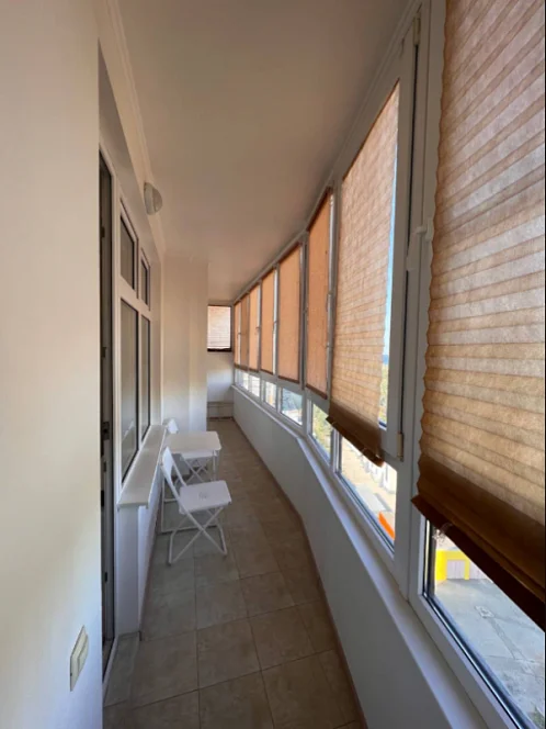Квартира с новым ремонтом и бытовой техникой необходимой для комфортного проживания (плита, чайник, утюг, сплит-система, стиральная машина, пылесос, телевизор, посуда, мультиварка, СВЧ). На балконе столик со стульями. На окнах жалюзи.