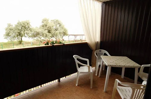 Гостевой дом расположен у самого берега Азовского моря, пляж у которого песочек и мелкая ракушечка.