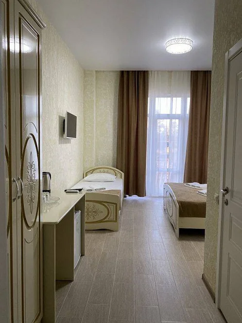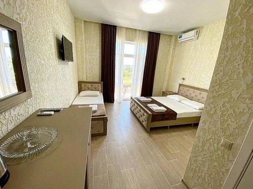 Комфортабельные номера со всеми удобствами: бесплатный Wi-Fi интернет, кондиционер, телевизор, холодильник, чайник, санузел, душ, фен, балкон со столиком и стульями, сушилка для одежды.