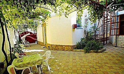 До Центрального песчаного пляжа 15-20 минут ходьбы. До парка развлечений и аттракционов - 10-15 минут пешком. На территории кухня для самостоятельного приготовления пищи, двор для отдыха в тени виноградной лозы. Подробности: Просторный тенистый двор с цветущими клумбами и местами для отдыха.