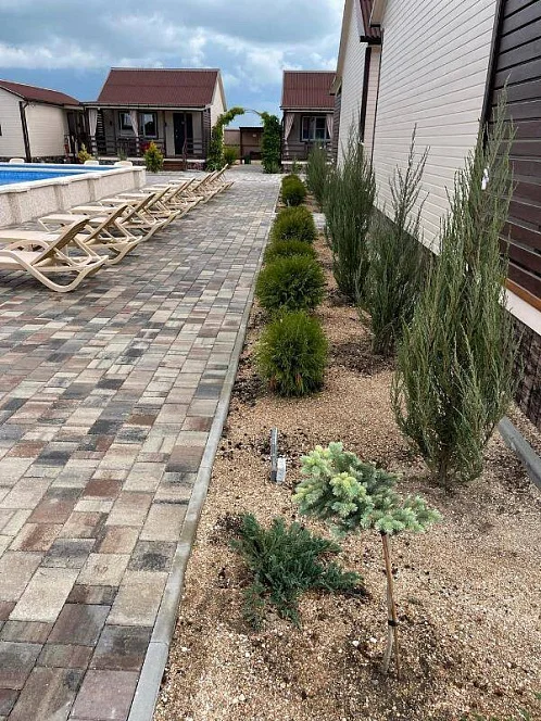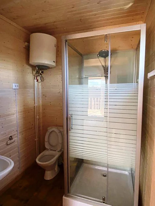 На территории базы расположены новые комфортабельные деревянные эко домики общей площадью 36 кв.м. + просторная терраса 18 кв.м., которая обустроена садовой мебелью. Домики расположены на расстоянии друг от друга, что обеспечивает сохранение личного пространства наших гостей. На территории находятся мангальные зоны общего пользования с подводом горячей и холодной воды (шампуры и решетки предоставляются бесплатно, древесный уголь за доп. оплату ), душ для ног общего пользования, детский игровой комплекс, спортивная площадка, батут. На всей территории базы бесплатный скоростной WI-FI.