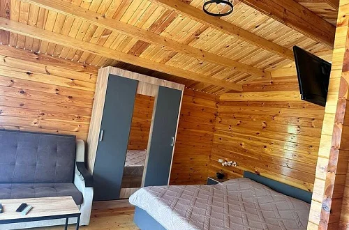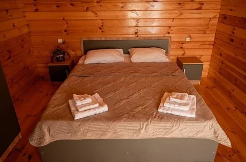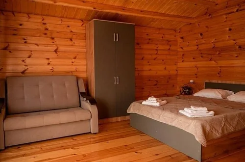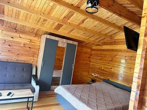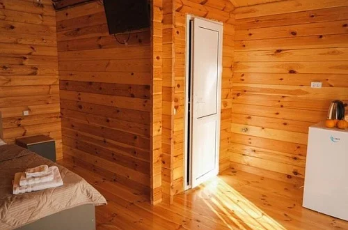 Каждый коттедж укомплектован всем необходимым: двуспальная кровать плюс мини диванчик, прикроватные тумбочки, санузел/душ, кондиционер и телевизор, стиральная машинка, мини кухня, шкаф. На всей территории функционирует бесплатный интернет. В шаговой доступности расположены столовые и ресторан национальной кухни (Апацха). А на территории комплекса имеется мангальная зона.