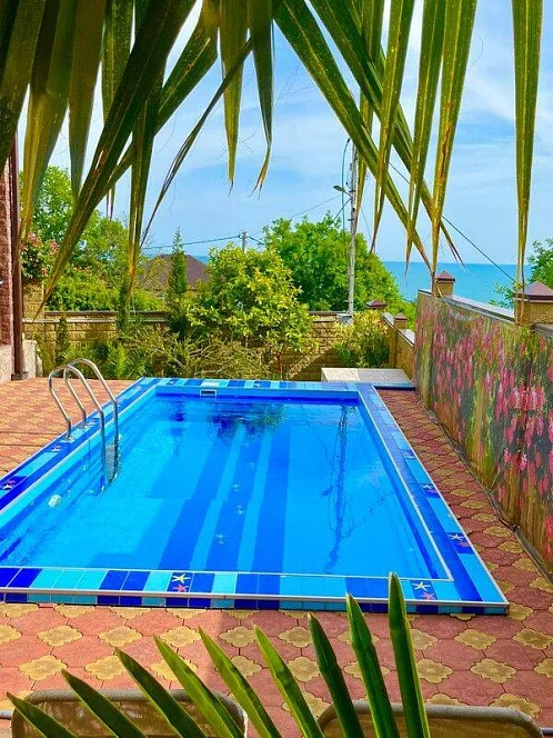 - Бассейн двухуровневый (глубина 1.5 метров и 2 метра), с шезлонгами