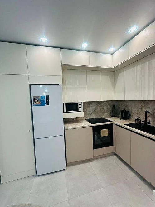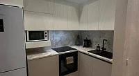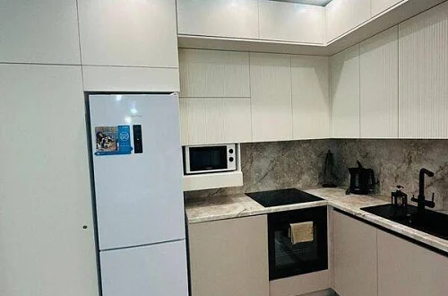 В квартире есть вся необходимая техника: холодильник, индукционная варочная панель, духовой шкаф, посудомоечная машина, печь СВЧ, чайник, утюг, гладильная доска, фен, бойлер, 2 телевизора: smat TV и телевизор с Алисой.