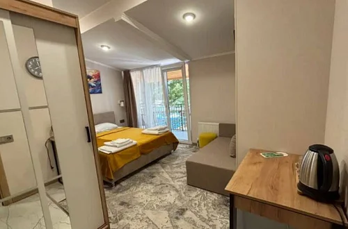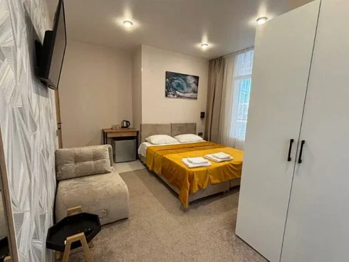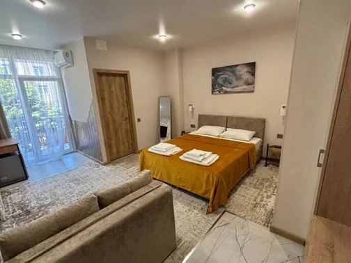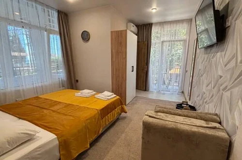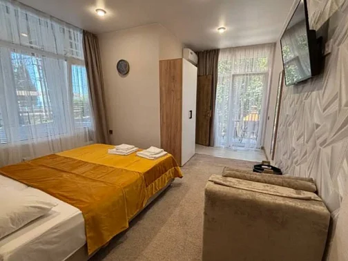 13 новых, просторных, комфортных и обустроенных номеров: санузел с душем, телевизор, холодильник, кондиционер. Все номера порадуют Вас чистотой и уютом. В номерах с комфортом могут разместиться от 2 до 4 человек, прекрасно подойдет для семейной пары с детьми. Дети с года оплачиваются полностью.